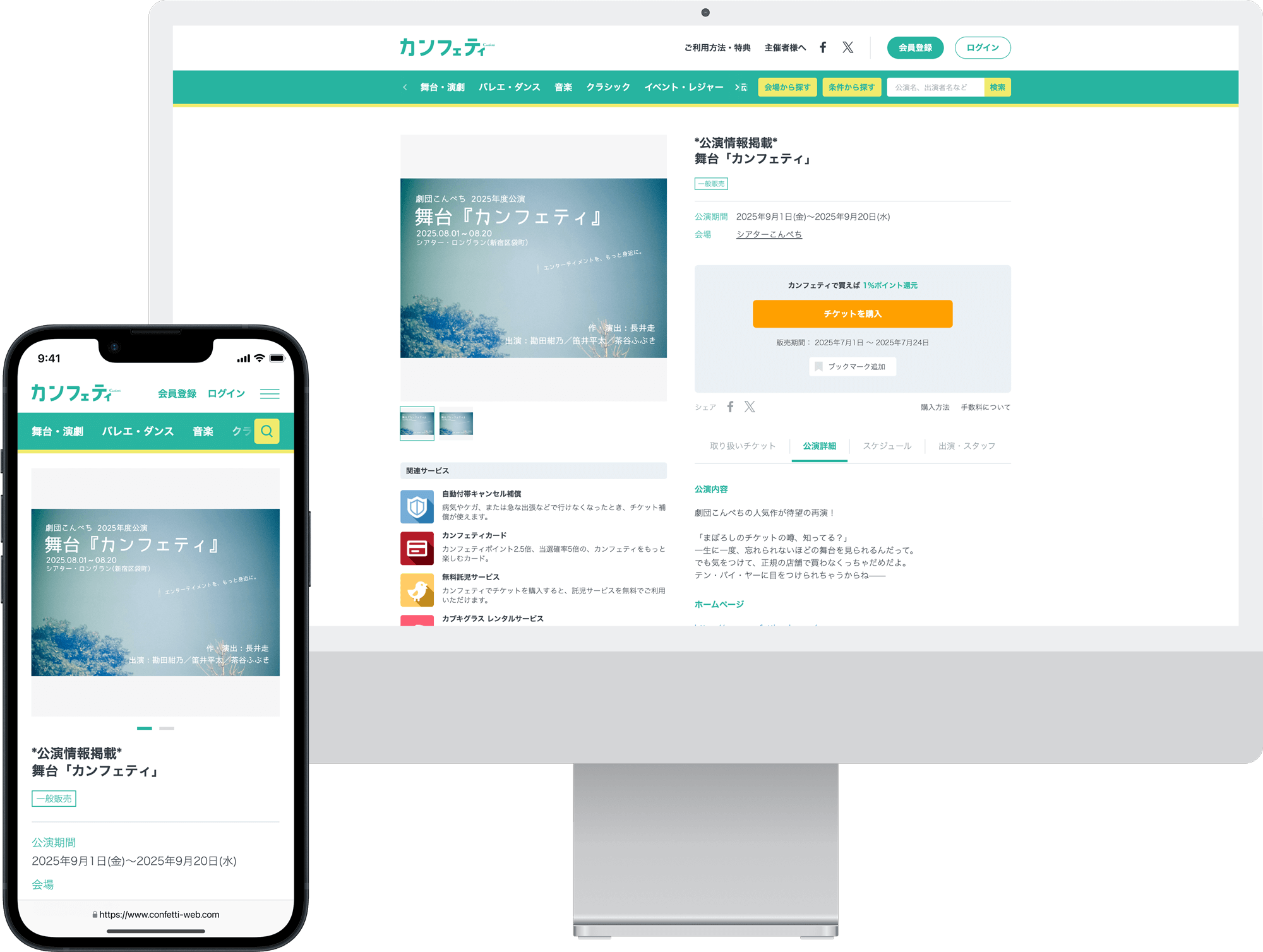 全国150万人以上の会員を抱える カンフェティWEBサイトに、